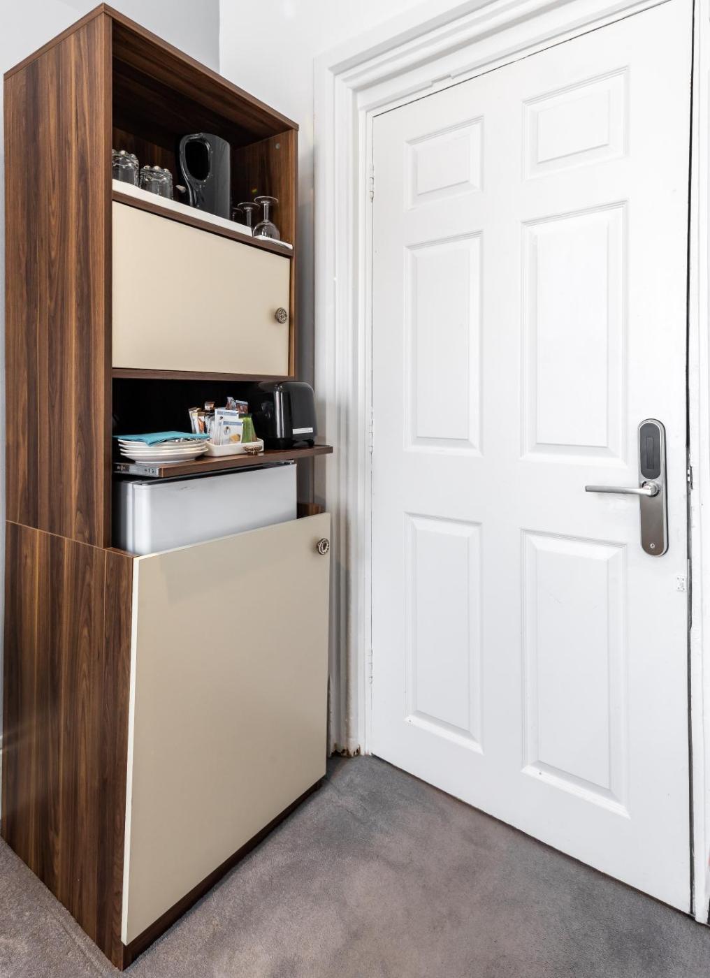 Family Room with Private Bathroom. Providing free toiletries, this family room includes a private bathroom with a shower and a hairdryer. The family rooms kitchenette, which features a refrigerator and a microwave, is available for cooking and storing food. The family room provides a tea and coffee maker, a wardrobe, a safe deposit box, heating and a TV with cable channels. The unit offers 4 beds. ;